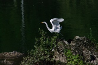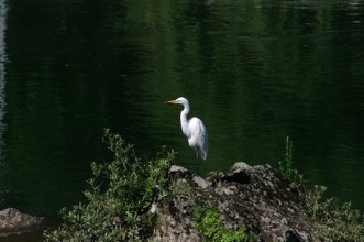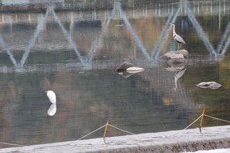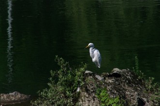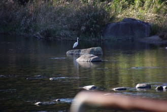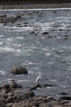 / 川,岩石,植物,河畔植生,鳥,鷺,サギ
