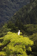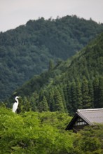 / 植物,木,山,鳥,サギ,鷺,空,家