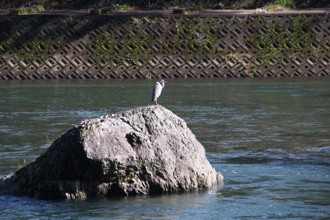 / 川,岩石,鳥,鷺,サギ,植物,河畔植生