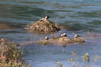 / 川,岩石,植物,河畔植生,鳥,カモ,鴨,カルガモ
