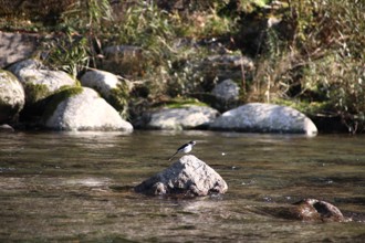 / 川,岩石,鳥,セキレイ,植物,河畔植生