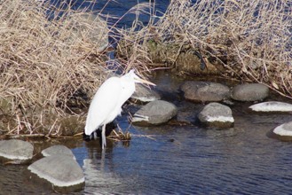 / 川,岩石,しぶき,鳥,サギ,鷺