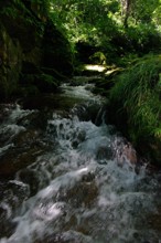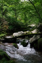 / 川,岩石,しぶき,植物,木,河畔植生
