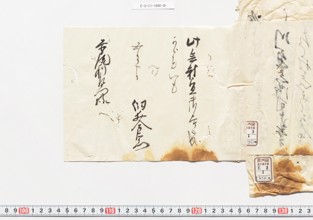 一色様へ御三所様ゟ御案文扣今右衛門へ遣候切紙并別紙扣(包紙)
