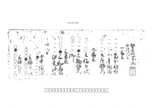 御射術御稽古ニ付安池藤四郎参上往返雑用東御屋敷与二ツ割勘定書并諸取扱向覚書其外往復之手紙等入