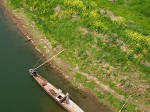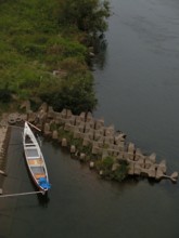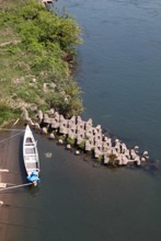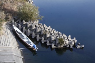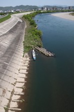 / 川,船,消波ブロック,植物,河畔植生,タイヤ