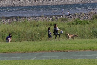 / 川,河原,植物,河畔植生,人,子供,犬