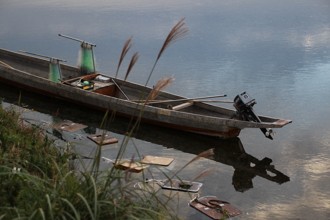 / 川,植物,河畔植生,船,エンジン,網