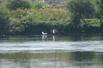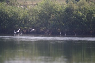 / 川,植物,河畔植生,木,花,鳥,サギ,鷺