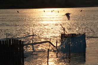 / 川,鳥,サギ,鷺,水面,網