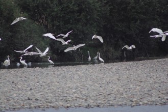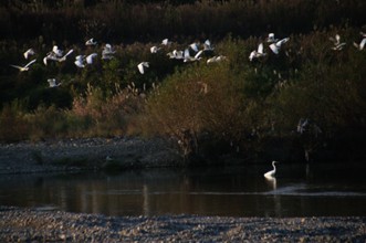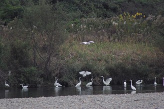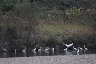 / 川,河原,植物,河畔植生,鳥,サギ,鷺