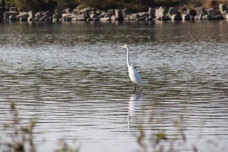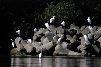 / 川,植物,河畔植生,消波ブロック,鳥,鷺,サギ