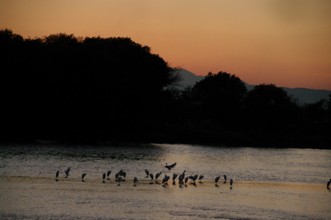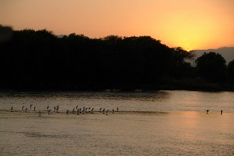 / 川,植物,木,鳥,サギ,鷺,山,空,夕焼け