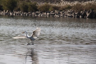 / 川,消波ブロック,鳥,鷺,サギ,植物