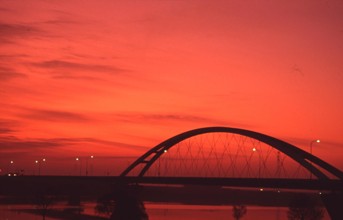 緑陰 / 太陽,山,橋,船,川,鉄塔,空