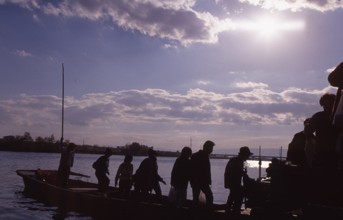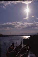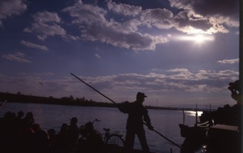 日の出 / 船,人,笠,腕時計,救命胴衣,タオル,川,ロープ,チラシ,新聞紙