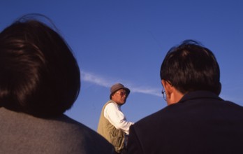 / 人,眼鏡,サングラス,船,救命胴衣,車,手袋,帽子,空,雲