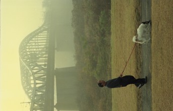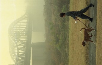 / 人,犬,橋,植物,散歩,霧