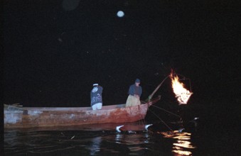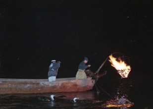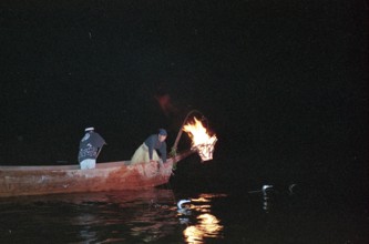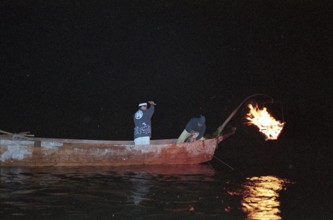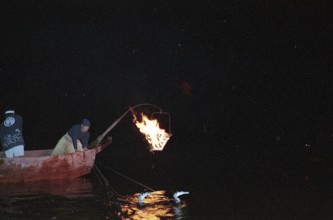 小瀬鵜飼 / 鵜飼,鵜,鵜匠,かがり火,法被,船,川,人,はちまき,植物