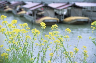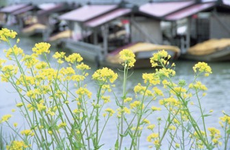 / 舟,川,植物,花,菜の花