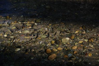 / 川,川底,魚,岩石,波紋