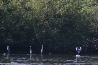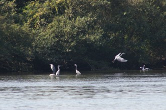 / 川,岩石,鳥,サギ,鷺,植物,河畔植生,木