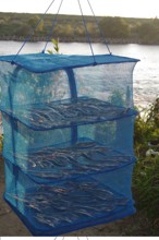 / 川,消波ブロック,植物,河畔植生,木,ドラム缶,トング,魚,アユ,鮎,人,網,眼鏡,帽子,腕時計,建物,農具,バケツ,新聞紙