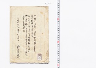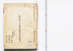 宝暦十庚辰年濃州私領国役御普請出来形帳奥書文言、同十二年午年八月八日千種清右衛門様ヨリ御三所様江御懸合一件御用留之内ヨリ調出シ、後年為見合記