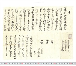 寛文十二御国役ヨリ書付并御奉書写、同御普請目論見帳一冊、杉田九郎兵衛殿ヨリ来状弐通、外ニ岡田将監殿ヨリ来状壱冊(包紙)